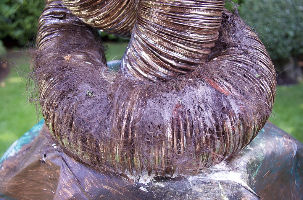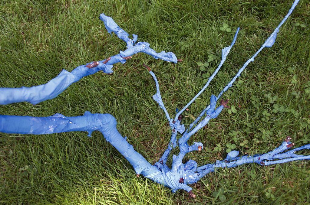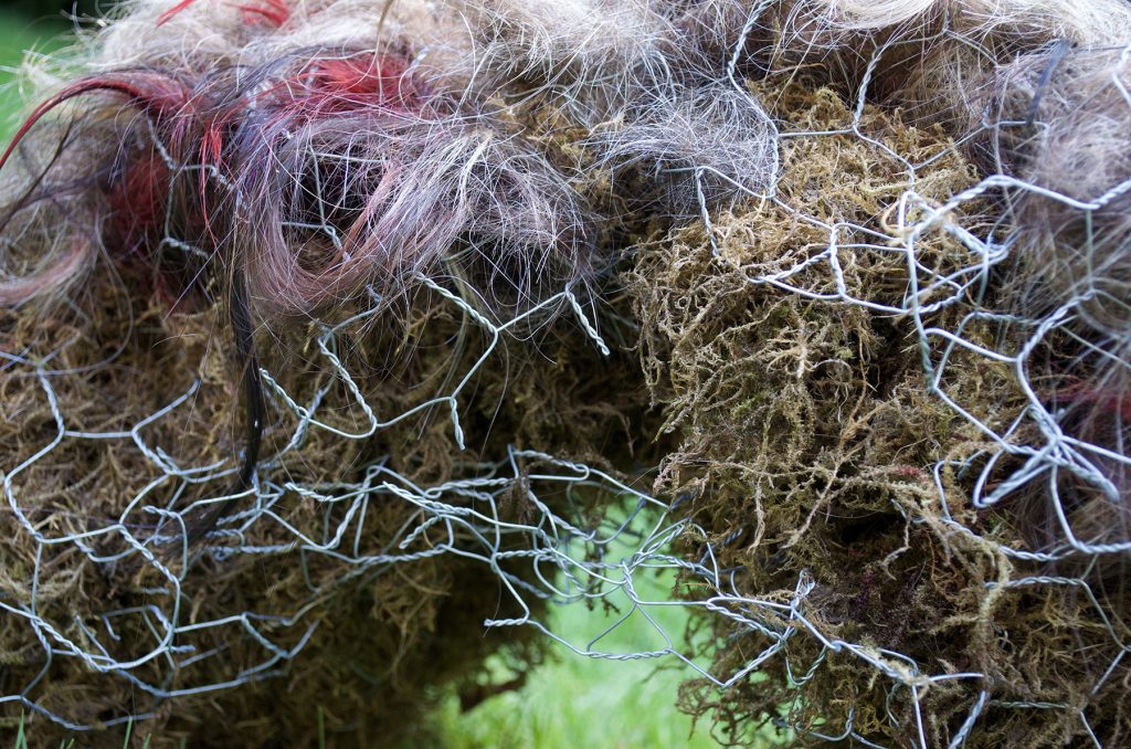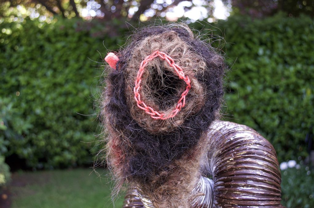 Due to Covid-19, many patterns have changed in our lives, including an increased number of humans planting urban gardens. Additionally, the lockdowns in city centres—and the attendant quiet on normally busy streets—have created an unprecedented chance for urban animals to roam. Pandemic Sculpture Garden (2020) is an exhibition of sculptures that examines the permeable boundaries between human and nonhuman systems. As cities continue to spread out into the natural landscape, and development and density shrink ecosystems and habitats, urban animals must continually relearn how to co-exist with their human neighbours. Employed by psychoanalysis as well as biology, the term symbiosis describes a system in which members of (different) species live in physical contact. In evolution, symbiogenesis relates to the cooperation between species in order to increase their survival. Feminist philosopher of science Donna Haraway continued this idea using the word ‘sympoiesis’ to describe how our lives and the lives of other species intersect. This project used connected and porous materials found in my urban garden to examine infectious disease, interspecies relations, cohabitation, and symbiogenesis (including the appearance of new bodies, organs and species). This unconventional sculpture garden is a speculative tale of animal-human sympoiesis which invites diverse publics (human and nonhuman alike) to experience a utopian/dystopian future of survivors and remnants who emerge from damaged worlds.